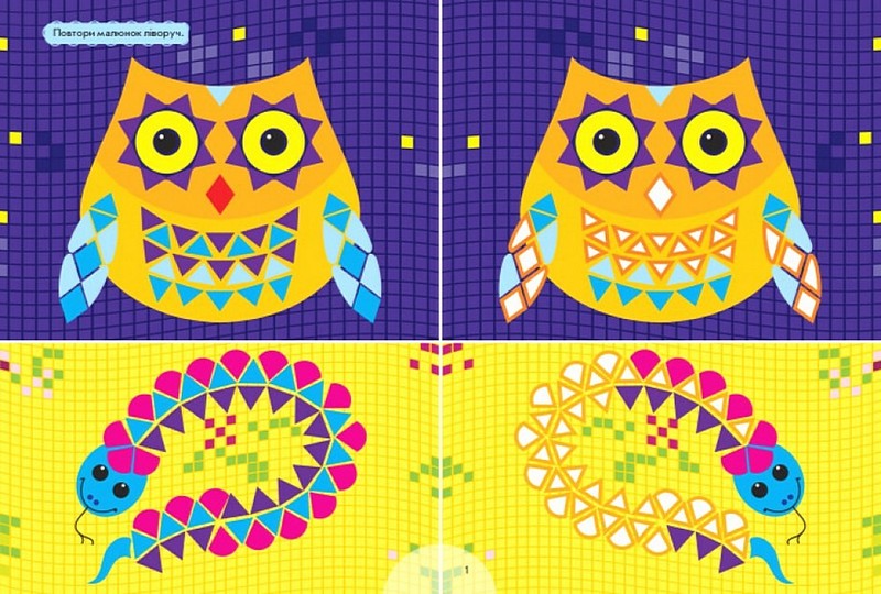 У книжці дитина зможе створювати найрізноманітніші малюнки за допомогою яскравих наліпок! У "Великій мозаїці з наліпками" можна: створювати власний дизайн; підбирати наліпки за кольором, формою і розміром; наклеювати наліпки за зразком. Підказки на малюнках допоможуть добрати потрібні наліпки (а їх у книжці понад 600!).