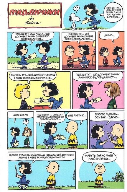 Улюблена банда пуцьвірінків зібралася у повному складі у цій новій колекції визнаної коміксової серії! Пропонуючи мікс із нових історій та недільних стріпів Чарльза Шульці, ця книжка нагадає вам, чому “Пуцьвірінки” ніжно люблять мільйони людей по всьому світу. Усі, від старих фанатів до но вих читачів знайдуть за що полюбити Снупі, Вудстока, Лінуса, Люсі і, звісно ж, старого друга Чарлі Брауна.