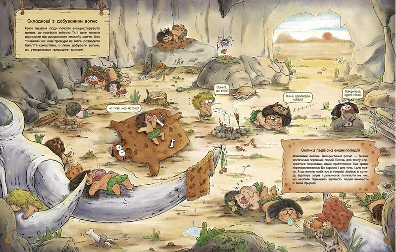 «Життя первісних людей» — це серія путівок у минуле «два в одному»: енциклопедія і комікс, які пояснять дитині шлях людського розвитку з найдавніших часів до сьогодення.