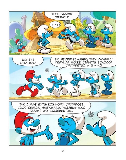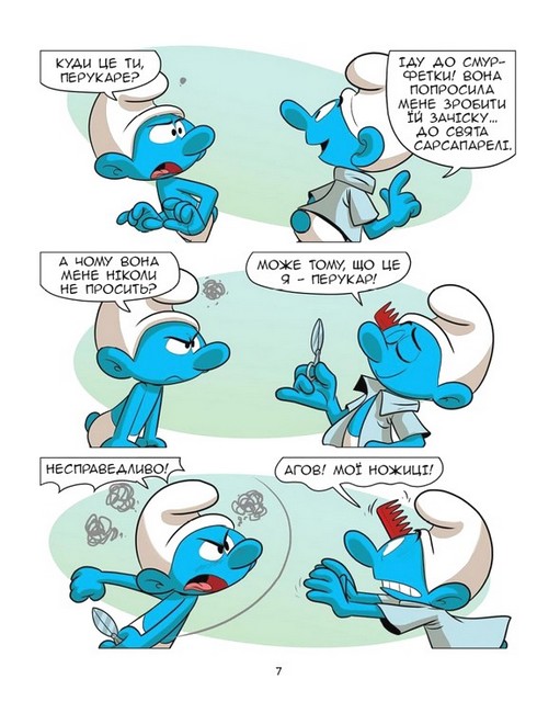 Смурф Буркотун пильнує, аби у селищі все робилося по-справедливому, і прагне рівності в усьому. Але іноді така позиція теж може завдати шкоди. Адже хто, наприклад, може зробити зачіску краще за Перукаря? І що є справедливим: робити те, що в тебе виходить найкраще, чи віддати ножиці іншому смурфикові, бо йому так закортіло?