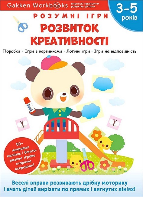 Вирізання та наклеювання — важлива складова підготовки малюка до початкової школи. У віці від двох до чотирьох років робити це складно, але можливо. Саме на це націлена книжка «Gakken. Розумні ігри. Розвиток креативності. 3-5 років». Вона входить до серії книжок «Розумні ігри», що забезпечує дітей комплексними знаннями та навичками та сприяє гармонійному розвитку малечі в цілому.