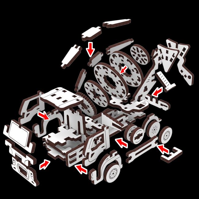 Сміттєвоз. Механічна дерев'яна 3D-модель