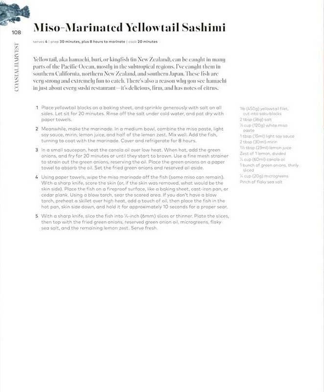 Книга ідеальна для тих, хто закоханий у рибу, морепродукти, прибережну кухню та автентичні натуральні смаки. Вона стане чудовим відкриттям і для новачків, і для досвідчених кухарів, адже автор пояснює техніки просто й доступно.