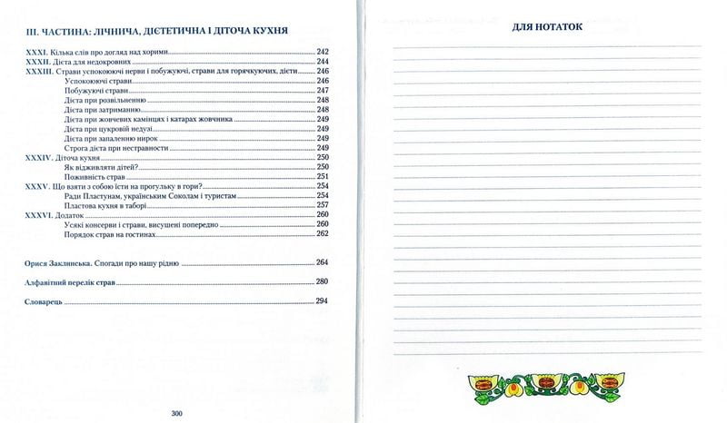 «Нова кухня вітамінова» - Осипа Заклинська (Львів 1928р.) – оформлена у стилі галицької сецесії (модерн) у техніці акварель. Художник – Валентина Ареп'єва (м. Дніпро).