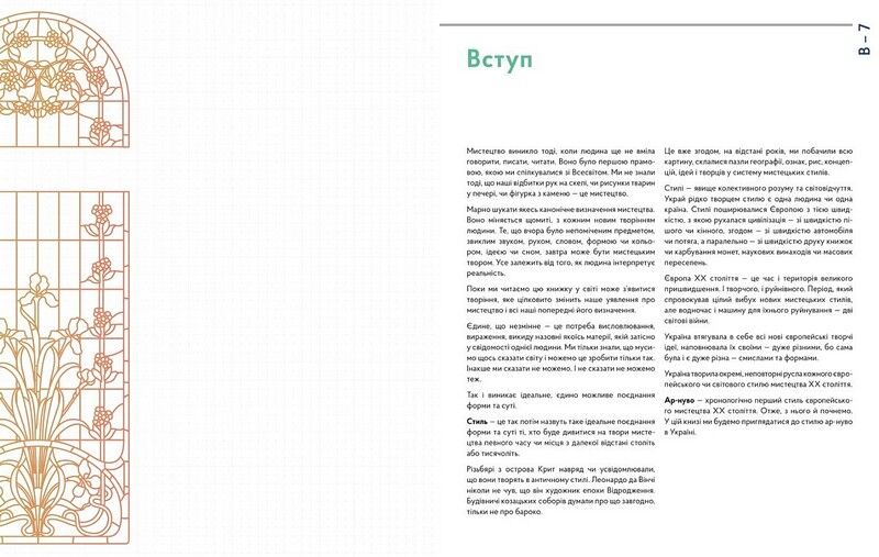 ХХ століття — період, який спровокував цілий вибух нових стилів у світовому мистецтві, серед яких хронологічно першим був ар-нуво. Україна вбирала в себе всі нові європейські творчі ідеї, наповнюючи їх власними смислами і формами. Для тих, хто досі не цікавився вітчизняним мистецтвом, ця книжка стане зручним і привабливим трампліном для входження до світу візуальної культури. А фахівці зможуть подивитися на свою царину з нового боку: побачити зображення рідкісних творів українського ар-нуво з обласних музеїв та простежити зв'язки національних і світових тенденцій у мистецтві ХХ століття.