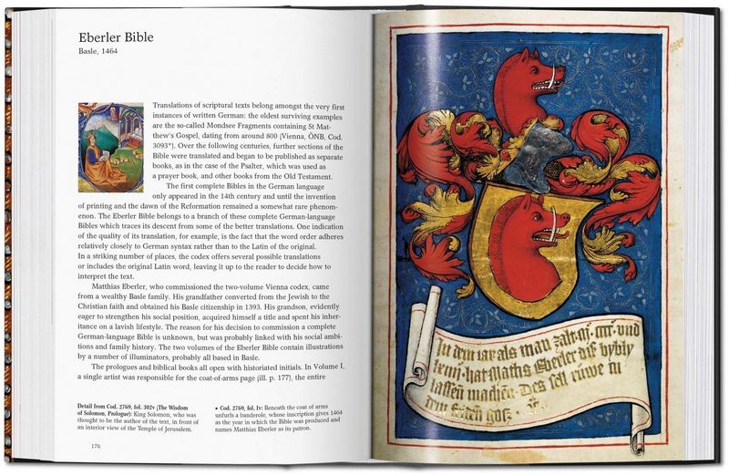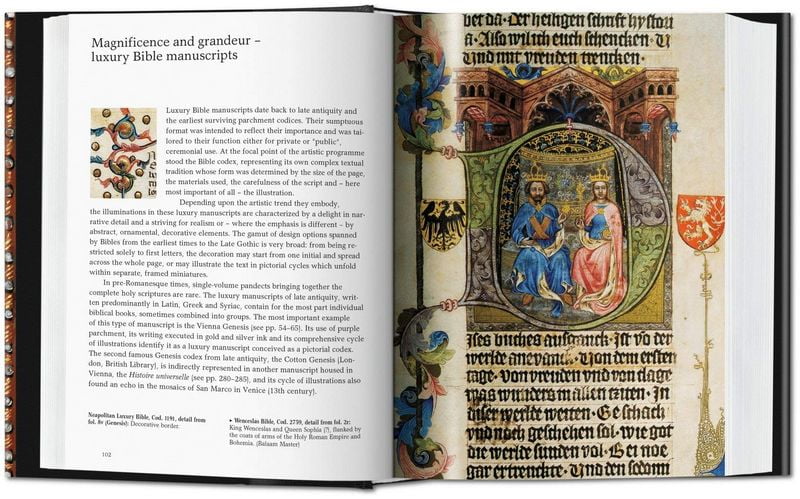 Texts by Andreas Fingernagel, Stephan Füssel, Christian Gastgeber, and a team of 15 scientific authors describe each manuscript in detail, exploring both the evolution of the Bible and the medieval understanding of history. A glossary of important terms is also included so that those not versed bible in history can enjoy the texts as well.