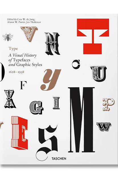 «Type: A Visual History of Typefaces and Graphic Styles 1628–1938» від TASCHEN — грандіозна енциклопедія еволюції типографіки за три століття. Від витончених барокових літер до індустріальних гротесків початку ХХ століття — на сторінках книги розкривається багатство шрифтових стилів, орнаментів, літографій, декоративних та рекламних плакатів, що сформували візуальну мову Європи й Америки.