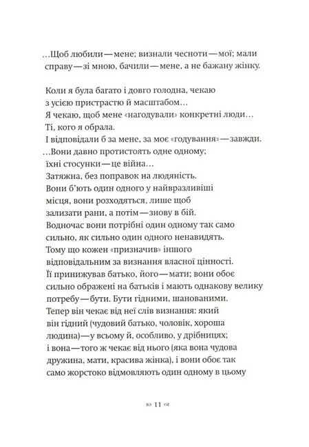 Людина не хоче бути жертвою. Вона хоче бути творцем, вільно та усвідомлено проживати власне життя. Та, на жаль, ми пристосовуємося до тієї атмосфери, в якій вимушені жити. І ми мусимо ставати жертвами, бо нас обсмикують, критикують, звинувачують і соромлять. Нас контролюють і не дають пережити власний досвід, на який ми могли б спиратися. Досвід і його значення сильно недооцінені. Ми не знаємо себе, справжніх, і не приймаємо себе. Але я вірю, читачу, що і ти зможеш, читаючи, потроху відкривати себе, відкриваючи свої справжні опори.