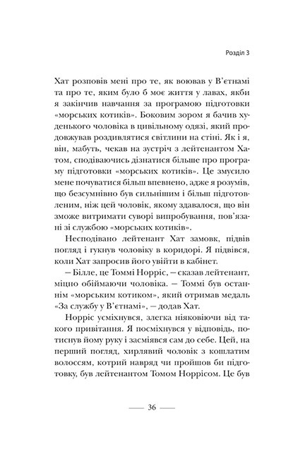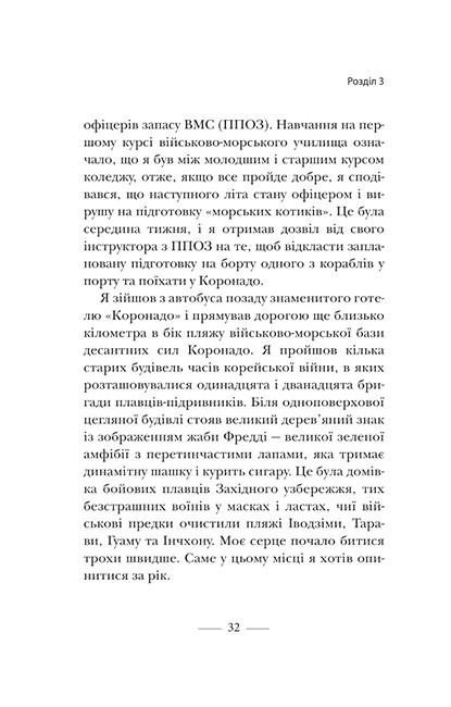 У цьому невеличкому виданні адмірал Вільям Г. Макрейвен, командувач Військово-морських сил США у відставці, визначив десять правил, яких він особисто завжди намагався дотримуватися і які допомогли йому з честю подолати чимало життєвих негараздів. Оригінально сформульовані правила на кшталт "не боятися акул", "не вдаряти передчасно у дзвін", "щоранку застеляти ліжко" мають глибокий підтекст. Автор розкриває суть кожного правила, розповідає цікаві історії про людей, які свого часу надихали його власною дисципліною, наполегливістю, благородством і мужністю.
