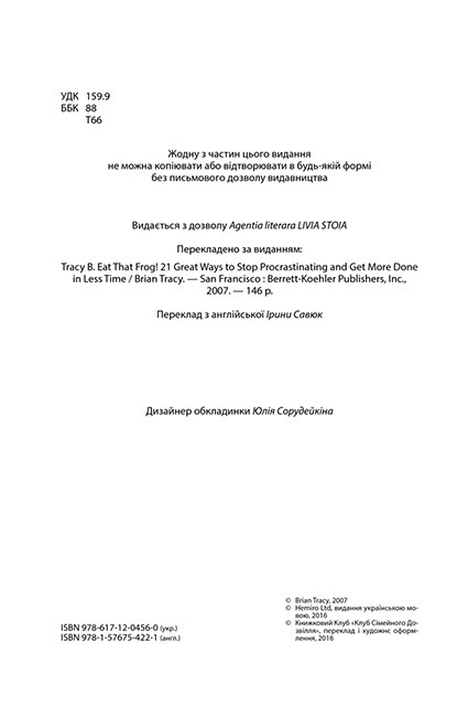 Скільки важливих справ ми відкладаємо на «пізніше»? Саме ця звичка забирає наш час і не дає досягати більшого. Брайан Трейсі, відомий експерт із тайм-менеджменту, у книзі «Зроби це зараз» ділиться 21 дієвим способом, як побороти відкладання справ і навчитися робити більше за менший час.