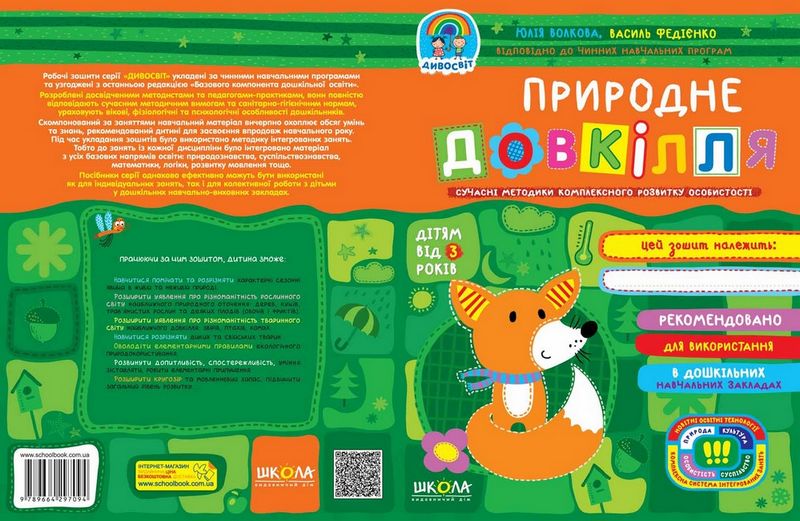Матеріал зошита скомпонований відповідно до природного сезонного циклу, допоможе поглибити та систематизувати знання дитини про живу й неживу природу: погодні явища, рослинний і тваринний світ тощо. Видання призначений для роботи з дітьми молодшого дошкільного віку (4-й рік життя) і спрямовано на формування у них первинної екологічної компетентності, тобто системи реалістичних уявлень про природне довкілля та елементарних правил природокористування.