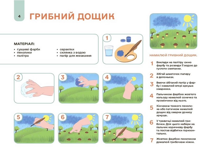 Передбачено малювання традиційними та нетрадиційними техніками (штампами, патичком, відбитками природного матеріалу та іншими). Рекомендовано для використання на заняттях у дитячих дошкільних закладах, а також для роботи батьків із дітьми.