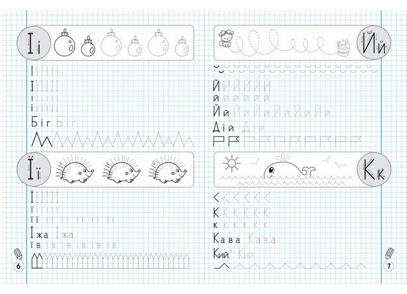 У зошиті розміщено комплекс вправ, мета яких — сформувати навички письма, зокрема літер української абетки й графічних елементів. Завдання дібрано за принципом «від простого до складного». Прописи-тренажер знайомлять з буквами, сприяють розвитку дрібної моторики та розумових здібностей, тренують руку, готуючи її до письма.