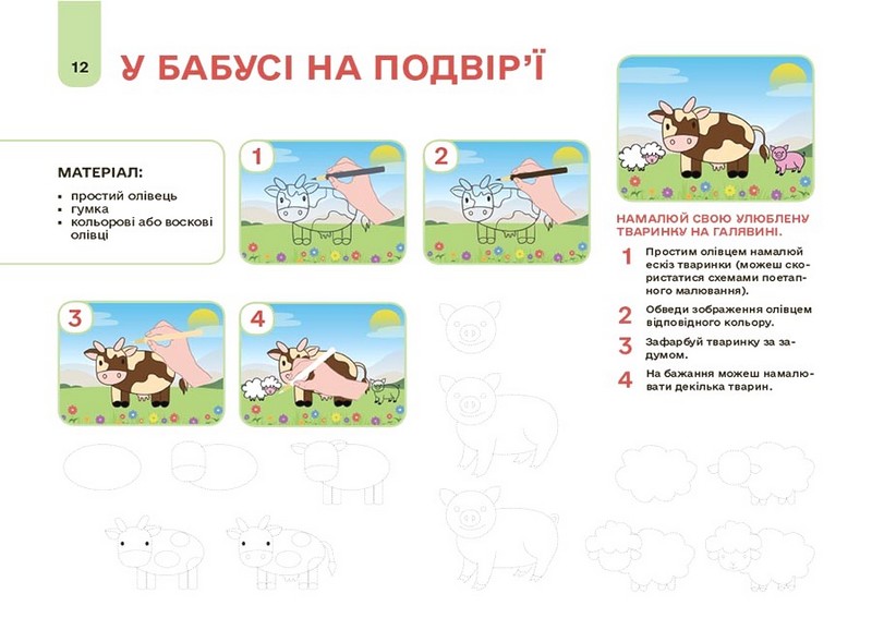 Передбачено малювання традиційними та нетрадиційними техніками (штампами, патичком, відбитками природного матеріалу та іншими). Рекомендовано для використання на заняттях у дитячих дошкільних закладах, а також для роботи батьків із дітьми.