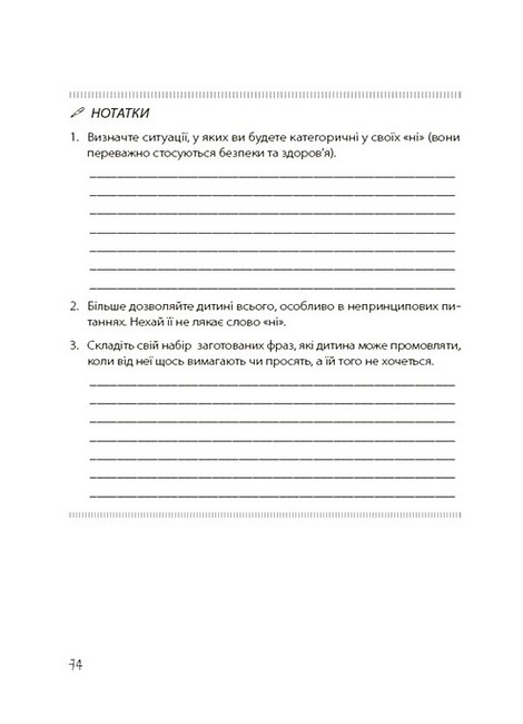 Часто у процесі виховання дітей батьки ставлять запитання — ЯК? Ви здивуєтесь, але відповідь на це доволі проста — власним прикладом. Книга «20 важливих навичок, що допоможуть дитині в житті» побудована на концепції спільного виховання — усе, чого ви навчатимете дитину, ви будете вдосконалювати і в собі, а саме: впевненість у своїх силах; самостійність в ухваленні рішень; уміння казати «ні»; відповідальність тощо.