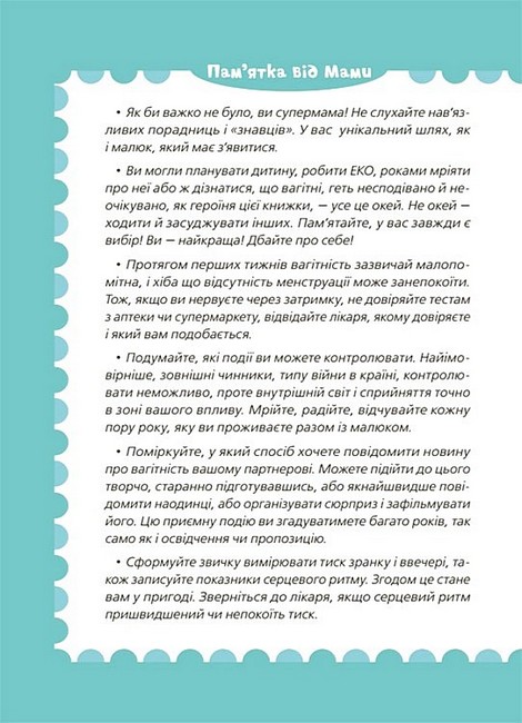 Ця книжка у форматі художньої розповіді допоможе майбутнім мамам краще зрозуміти зміни, які відбуваються в їхньому тілі та свідомості, а також ґрунтовно підготуватися до народження малюка.