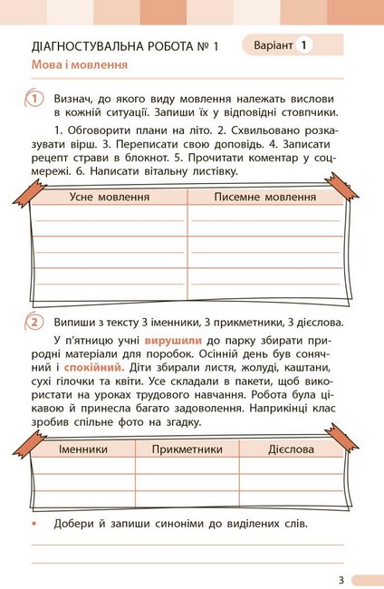 Українська мова та читання. 4 клас. Зошит для діагностичних робіт