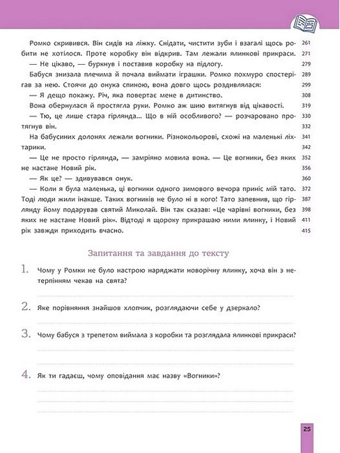 Також у посібнику містяться вправи на глибоке розуміння змісту, аналіз, виявлення прихованих сенсів, встановлення причинно-наслідкових зв’язків та розвиток мовленнєвої творчості.