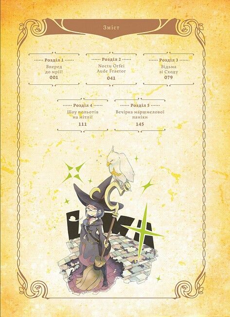 Лиш простягну руку — і розпочнеться моя історія! Захопившись пригодами чарівниці Шяйні Шяріо, Каґарі Ацуко вступає до найвідомішої магічної школи — Луна Нови. Вона не може дочекатися початку безсумнівно незвичного шкільного життя, але чи виправдає воно її очікування? Перед вами — перший том фентезійної історії, сповненої нових зустрічей, відкриттів і дорослих рішень. Як покарання за крадіжку їжі, Ацуко та її подруг змусили прибирати підземну комору. Там вони зустріли старця, який дав їм загадкове яйце, наказавши: «У жодному разі не дайте йому стати метеликом!». Спершу дівчата не знали, що робити, але раптом їм спадає на думку: «А чому б ним не поласувати?». Та на шляху до кухні на них налітає юрба чудовиськ! Чи зможуть вони все ж з’їсти свій омлет?
