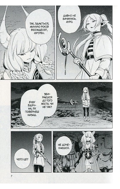 У третьому томі манґи «Проводжальниця Фрірен» історія набуває нової глибини. Ельфійка Фрірен продовжує свій шлях після перемоги над злом, але стикається з ворогом з минулого — демоницею Аурою Гільйотиною. Проте справжній зміст цієї зустрічі не в самій битві, а в тому, як вона впливає на внутрішній світ героїні. Це розповідь про силу пам'яті, переосмислення досвіду і тихий біль безсмертя.