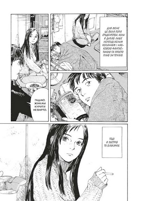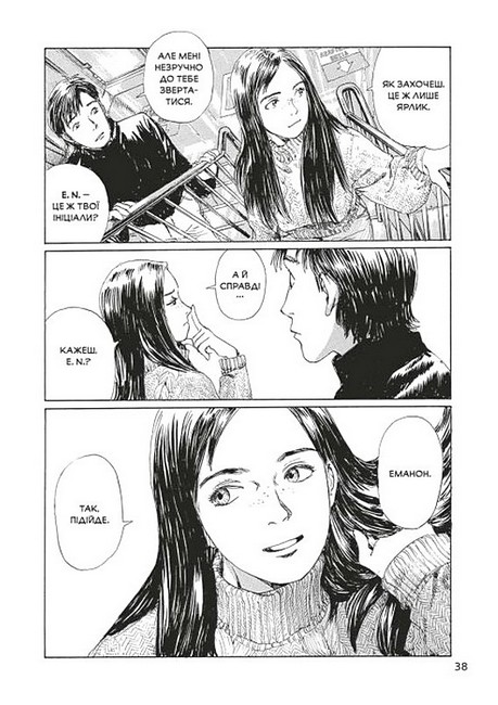 Довге волосся, светр грубого в?язання та джинси. Очі такі глибокі, наче от-от затягнуть у безодню. А ще цигарки. На торбі вишиті ініціали E. N. — Еманон. На перший погляд, звичайнісінька дівчина, але всередині вона ховає спогади про Землю від самого зародження життя.