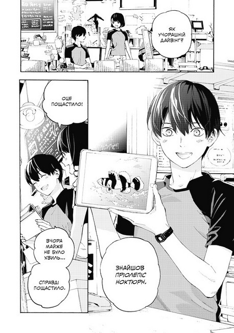 Цунео — студент університету, який обожнює океан і його мешканців. Його мрія — продовжити навчання за кордоном і досліджувати підводний світ… До її здійснення водночас і близько, бо він щиро горить цією ідеєю, і далеко — адже для цього потрібні гроші, яких у Цунео немає.