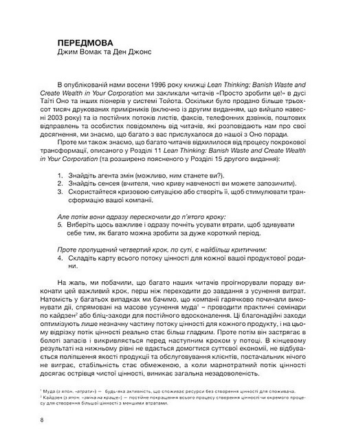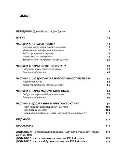 Майк Ротер та Джон Шук трансформували отримані від компанії Toyota Motor Corporation знання у незамінні поради із вміння бачити потоки цінності, які допомагають визначити особливості роботи процесів та шляхи виникнення втрат.