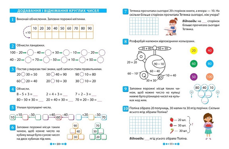 Зошит-практикум містить велику кількість вправ і задач, а також математичну гру. Посібник призначений для удосконалення обчислювальних навичок дитини, умінь розрізняти геометричні фігури за істотними ознаками, креслити, оперувати величинами й розв'язувати різні види задач.