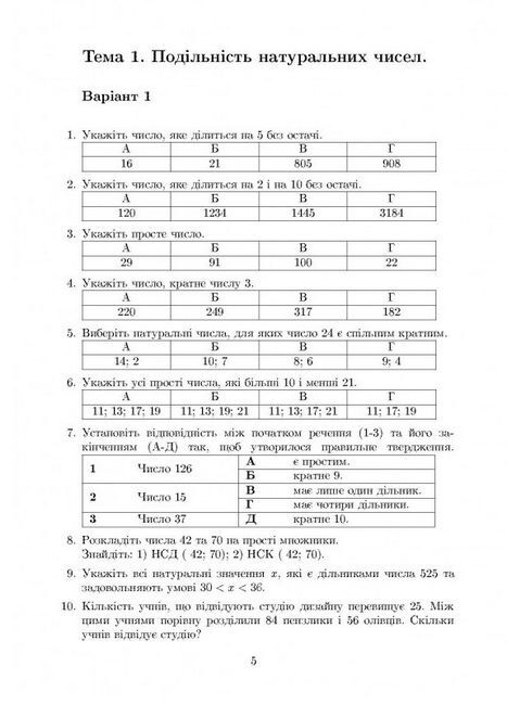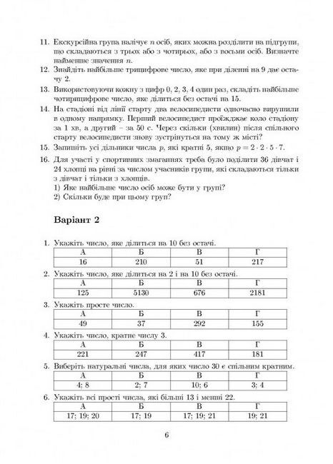 Посібник складений відповідно до чинної програми з математики для закладів загальної середньої освіти і являє собою збірник завдань з математики для 6 класу.