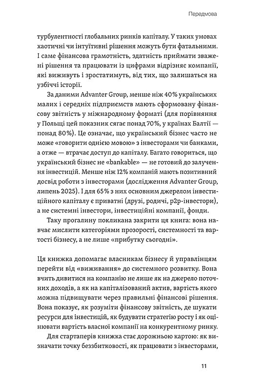 У цій книзі немає академічної сухості. Натомість автор пропонує живий діалог про те, як працюють гроші всередині компанії. Ви навчитеся відрізняти прибуток від грошей на рахунку, розуміти логіку інвестицій та бачити, куди насправді «витікає» ресурс. Це видання допомагає зняти маску страху перед бухгалтерськими балансами та навчитися приймати рішення, базуючись на твердих даних, а не лише на інтуїції. Автор розкриває складні концепції через зрозумілі приклади, що робить книгу доступною навіть для тих, хто ніколи не мав стосунку до економічної освіти.