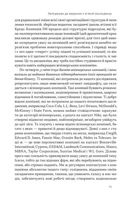 Що відрізняє справді видатні компанії від решти? Ґрунтуючись на багаторічному дослідженні, легендарний Джим Коллінз і професор Джеррі Поррас наводять численні приклади компаній, які є по-справжньому візіонерськими. Історії їхнього успіху мають мотивувати і сучасних менеджерів будувати бізнеси на совість.