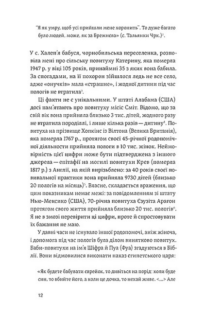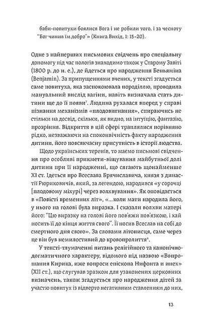 Книжка етнологині Олени Боряк присвячена унікальній постаті в історії української традиційної культури — сільській бабі-повитусі. Повитуха, або родопомічниця, не лише допомагала провести пологи та подбати про жінку і дитину, а й навіть віщувала долю новонароджених та отримувала від священника ім?я для малечі. Така традиція в українських селах зберігалась аж донедавна.