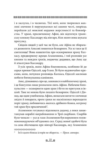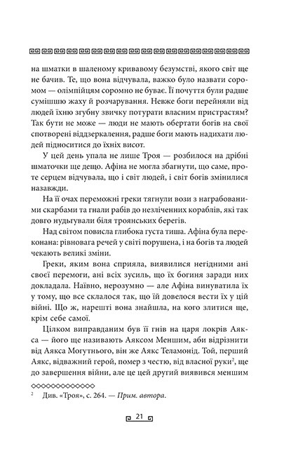 Міфологія, епос, художній переказ. Книга стане улюбленою для школярів, студентів, викладачів, а також для всіх, хто любить давньогрецькі міфи у сучасному викладі. Це видання допоможе легко й цікаво відкрити світ античності.