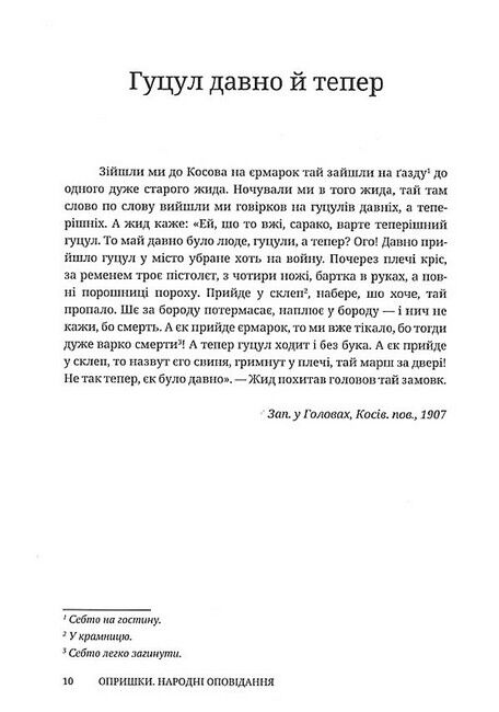 Разом з тим, Шекерик-Доників записав свої оповідання тими словами, шо чув від тих, хто їму оповідав — найчистішим гуцульським діалектом. Тимой у цій книжці маємо не лиш оповідання про опришків, а й ту мову, иков уни говорили.