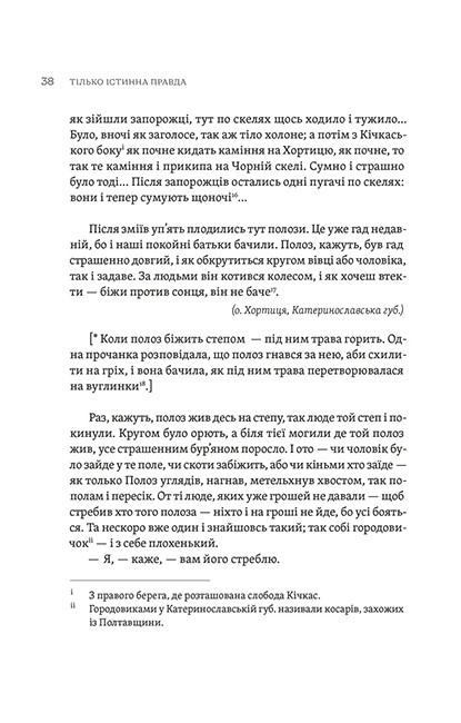 Книга нагадує збірки українських легенд і переказів, упорядкованих такими дослідниками, як Олександр Афанасьєв чи Михайло Драгоманов. Якщо вам цікаві праці про світову міфологію або народну культуру, «Тільки істинна правда» стане справжнім відкриттям.