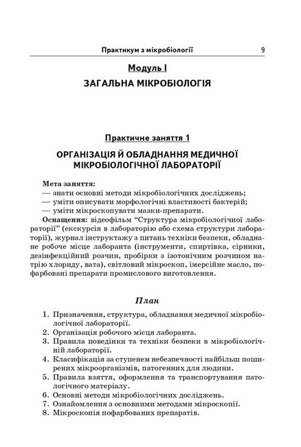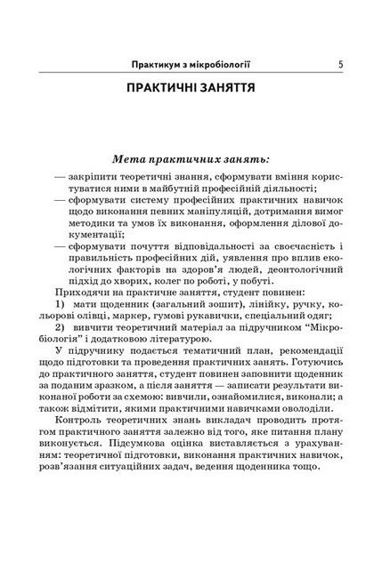 У практикумі описані алгоритми виконання професійних практичних навичок з мікробіології, тести, ситуаційні задачі, надано рекомендації щодо проведення модульного контролю знань, умінь і практичних навичок студентів з цього предмету. Для студентів медичних (фармацевтичних) коледжів, училищ, академії та інститутів медсестринства.