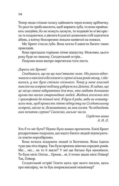 «І не лишилось жодного» — це не просто детектив. Це психологічний трилер, що тримає в напрузі з першої до останньої сторінки. Десятеро незнайомців запрошено на віддалений острів. Один за одним вони починають гинути — згідно з моторошним дитячим віршем, що висить у кожній кімнаті. Хто вбивця? Чому саме ці люди? І хто залишиться живим — якщо взагалі хтось залишиться?..