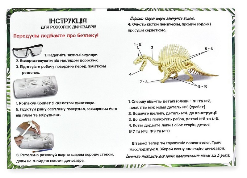 Набір для творчості "Розкопки динозавра. Мамонт" — цікавий та захопливий набір для допитливих дослідників. У коробці ви знайдете необхідні інструменти, окляри для захисту, гіпсовий брикет зі скелетом мамонта та пояснення, як саме діяти. Може здатися, що археологи вже знайшли всі скам'янілості, але скажемо по секрету, що ми дещо зберегли. Нумо до нових відкриттів!