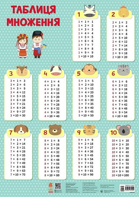 Навчальні плакати. Таблиця множення