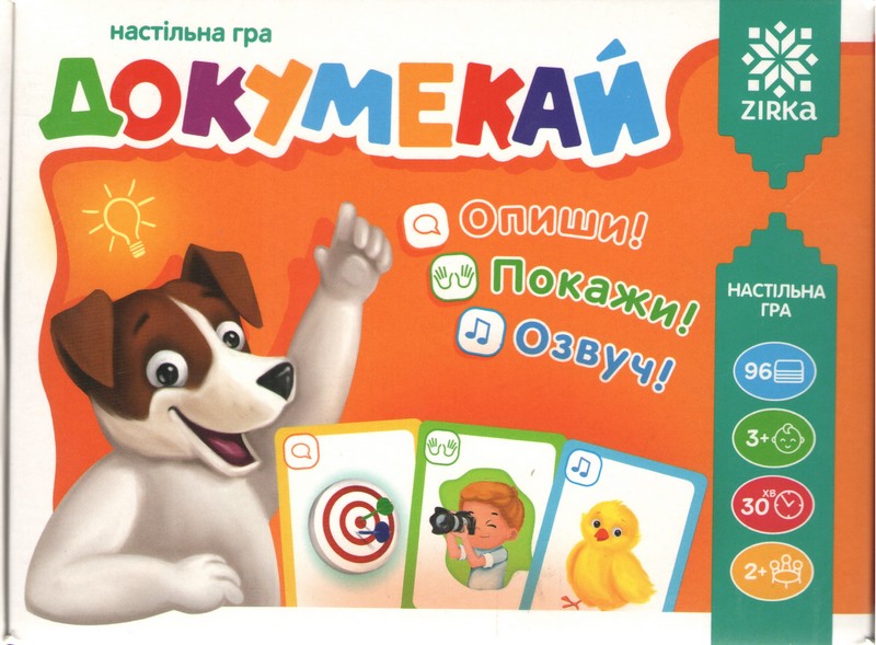 Весела гра "Докумекай!" - чудова гра для маленької або великої компанії. Допомагає розвинути кмітливість, акторські здібності, розвинути уяву, увагу, мовлення та асоціативне мислення. Чудова гра, як для сімейного відпочинку, так і для компанії друзів чи мало знайомих людей, яка має на меті здружити компанію, створити умови для веселого, динамічного відпочинку та чудового проведення часу, тренування кмітливості, вміння розуміти іншого та інтуіції!