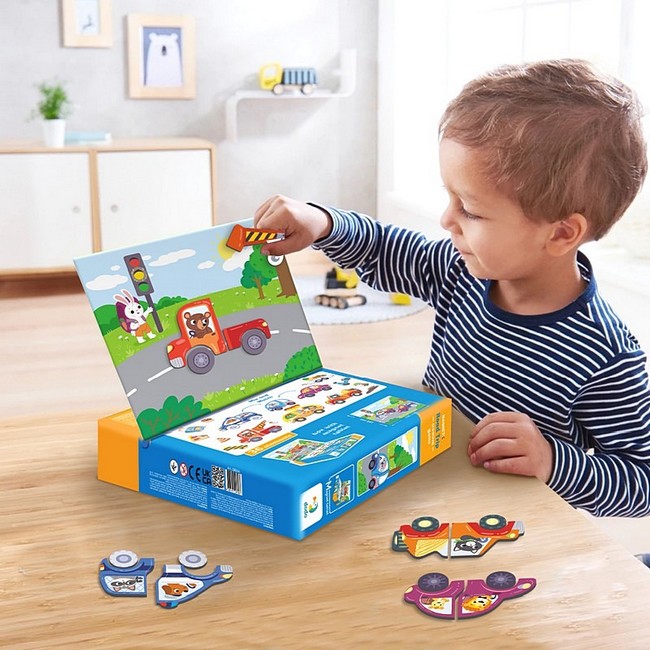 За допомогою цієї магнітної гри, діти можуть легко складати власні сценарії подорожей, розміщуючи на дошці різні транспортні засоби та навіть вигадувати власні, дорожні знаки та інші елементи. Вони можуть створювати дорожні пригоди, додавати перешкоди та вирішувати завдання, розвиваючи свою уяву та творчі здібності.