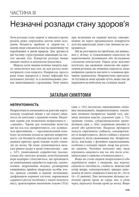 Протягом майже 40 років видання «Медицина в різних природних умовах: посібник з надання першої та невідкладної догоспітальної медичної допомоги» було настільною книгою для тих, хто вирушає в гори, ліс, пустелю чи на воду. Посібник містить гарно ілюстровані, зрозумілі вказівки з негайної стабілізації та надання допомоги людям із практично будь-якими проблемами зі здоров’ям, які розроблено для використання на місці, коли немає доступу до медичної допомоги вищого рівня. Це видання, написане фахівцями з надання медичної допомоги в різних природних умовах, допоможе вам упоратися з будь?якою ситуацією, доки за справу не візьметься медичний персонал.