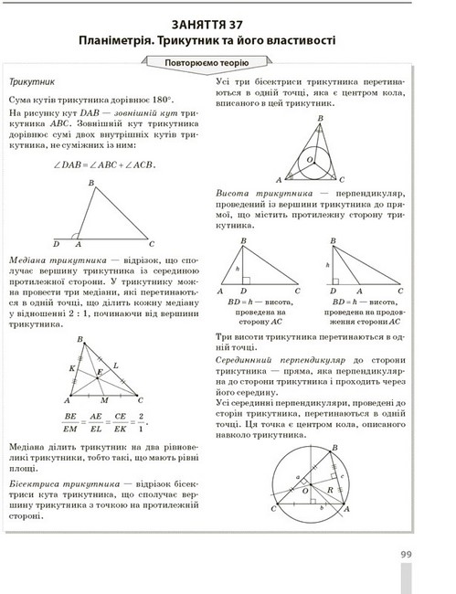 Частина І (тренажер) являє собою короткий курс математики, розрахований на 45 занять і поданий у вигляді опорних конспектів за темами. До кожної теми наведено тренувальні вправи у двох варіантах з відповідями до всіх завдань.