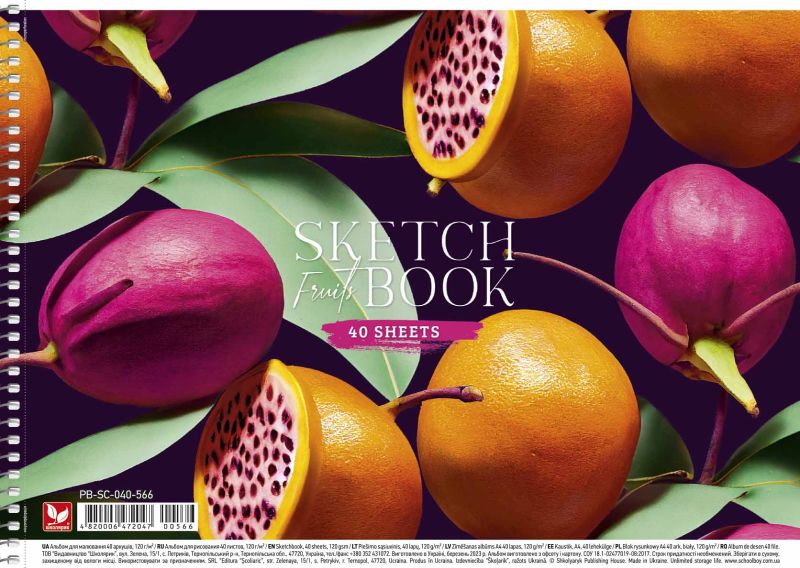 Альбом для малювання, спiраль, 40арк., 120г/м2, Школярик (PB-SC-040-566, УФ-лак)