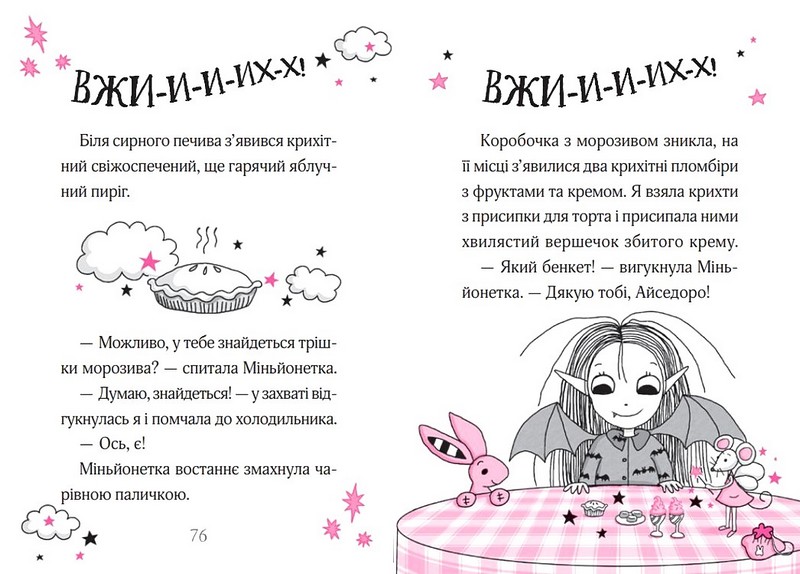 Тато — вампір, мама — фея, а Айседора Мун… Усього потроху. Щось середнє. Чарівне й непосидюче маля з крильцями та іклами спить і бачить, як би встромити кирпатого носика у чергову пригоду!