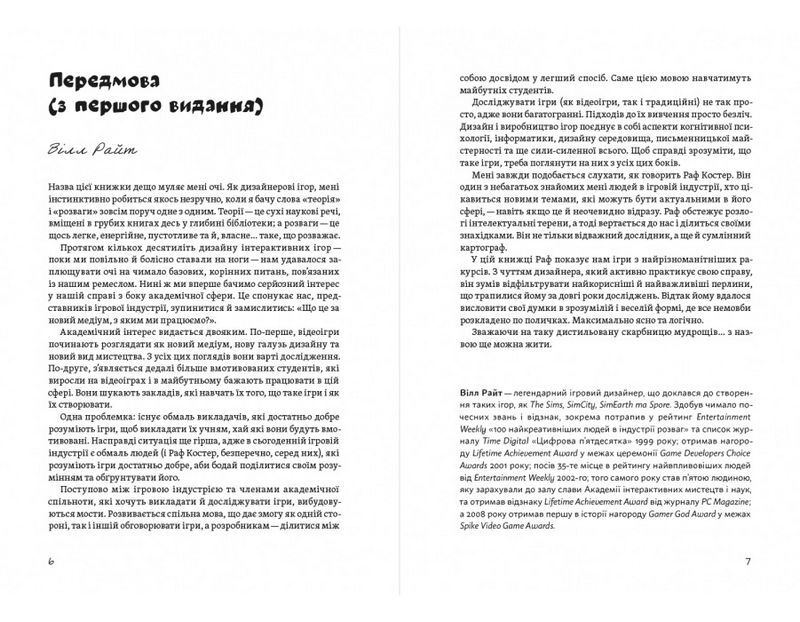 Ця класична праця досліджує вплив, який лежить в основі сучасних відеоігор, і елементи, що ріднять їх із традиційними іграми, такими як шашки. У центрі свого дослідження досвідчений ігровий дизайнер Раф Костер детально розглядає концепцію розваг та пояснює, чому це найважливіший елемент будь-якої гри.