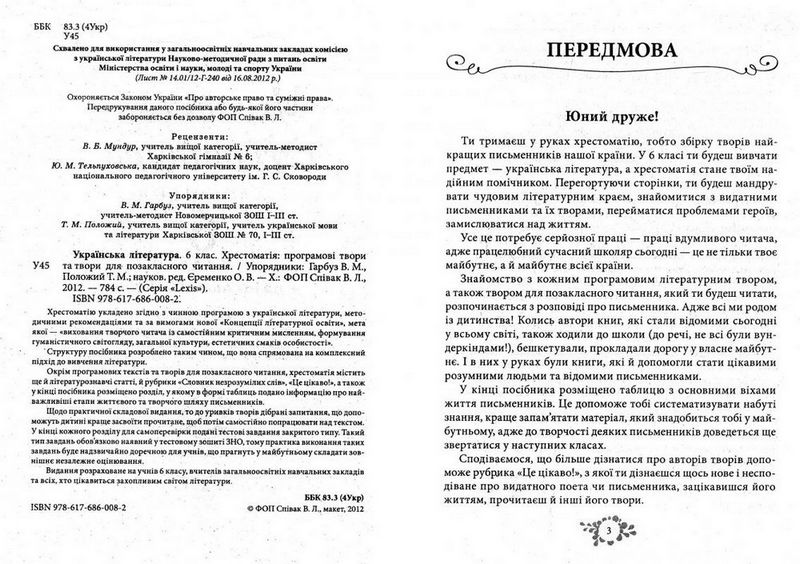 Відгуки про Українська література. 6 клас. Хрестоматія