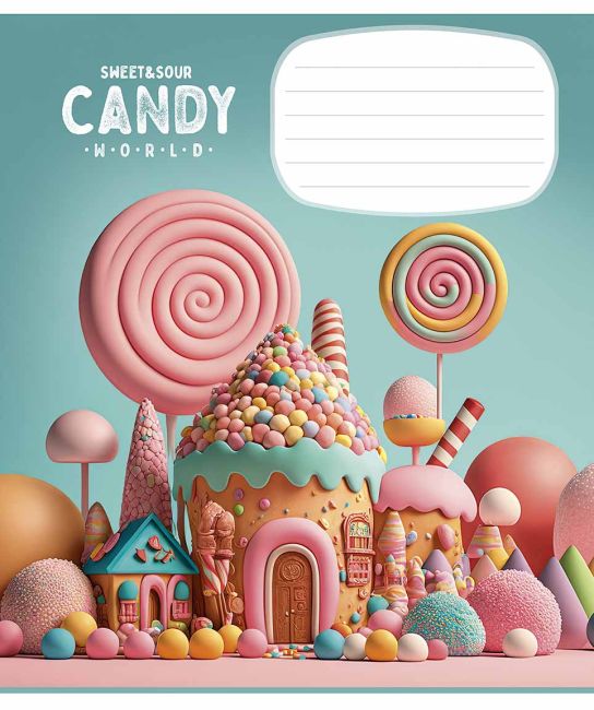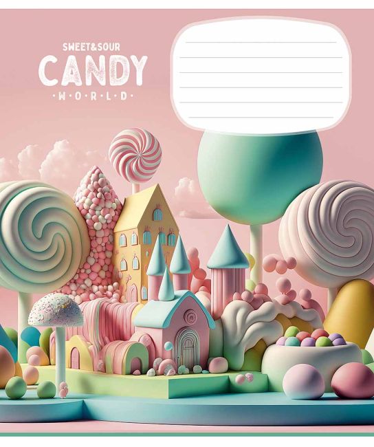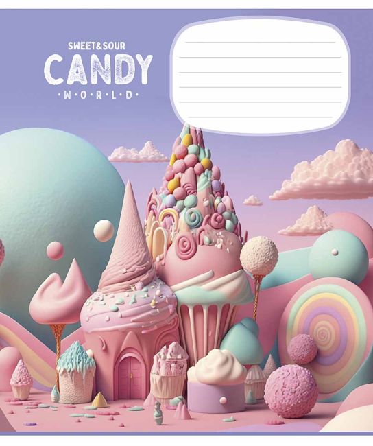Зошит учнівський, 12арк., у клітинку, ВД-лак, Школярик (012-3266K, Candy world 12к (дівч) )