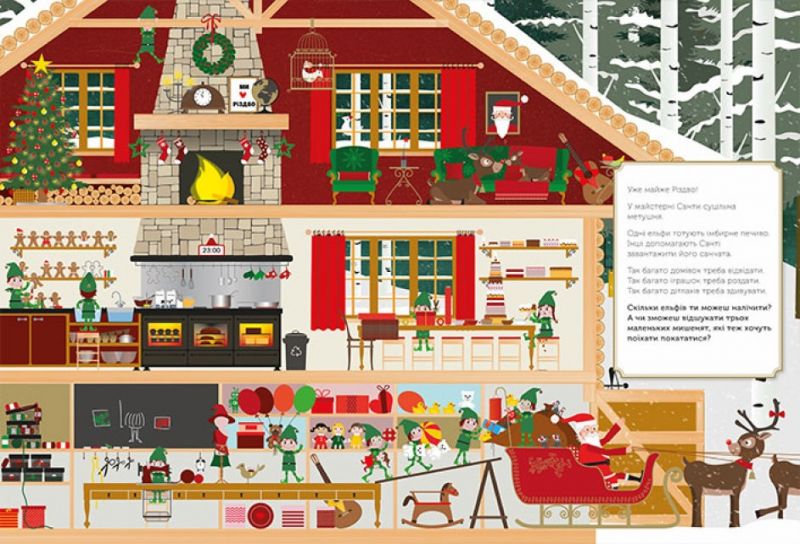 Яскравий і захопливий віммельбух «Різдвяні забавки. У пошуках подарунків від Санти" створить малюкам різдвяний настрій і допоможе чудово провести час.