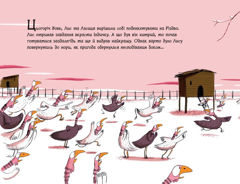 “Лис отримав завдання вкрасти Індичку. А що був він хитрий, то почав готуватися заздалегідь та ще й вибрав найкращу. Однак варто було Лису повернутись до нори, як пригода обернулася несподіваним боком…”